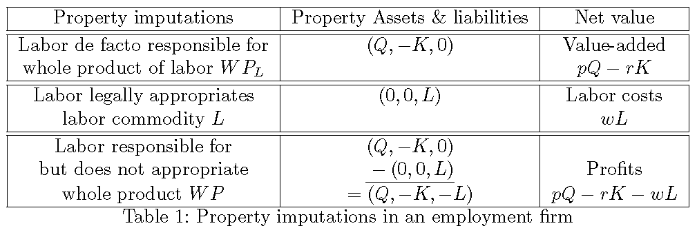 Keywords: marginal productivity theory, property theory, imputation of responsibility, vectorial marginal products